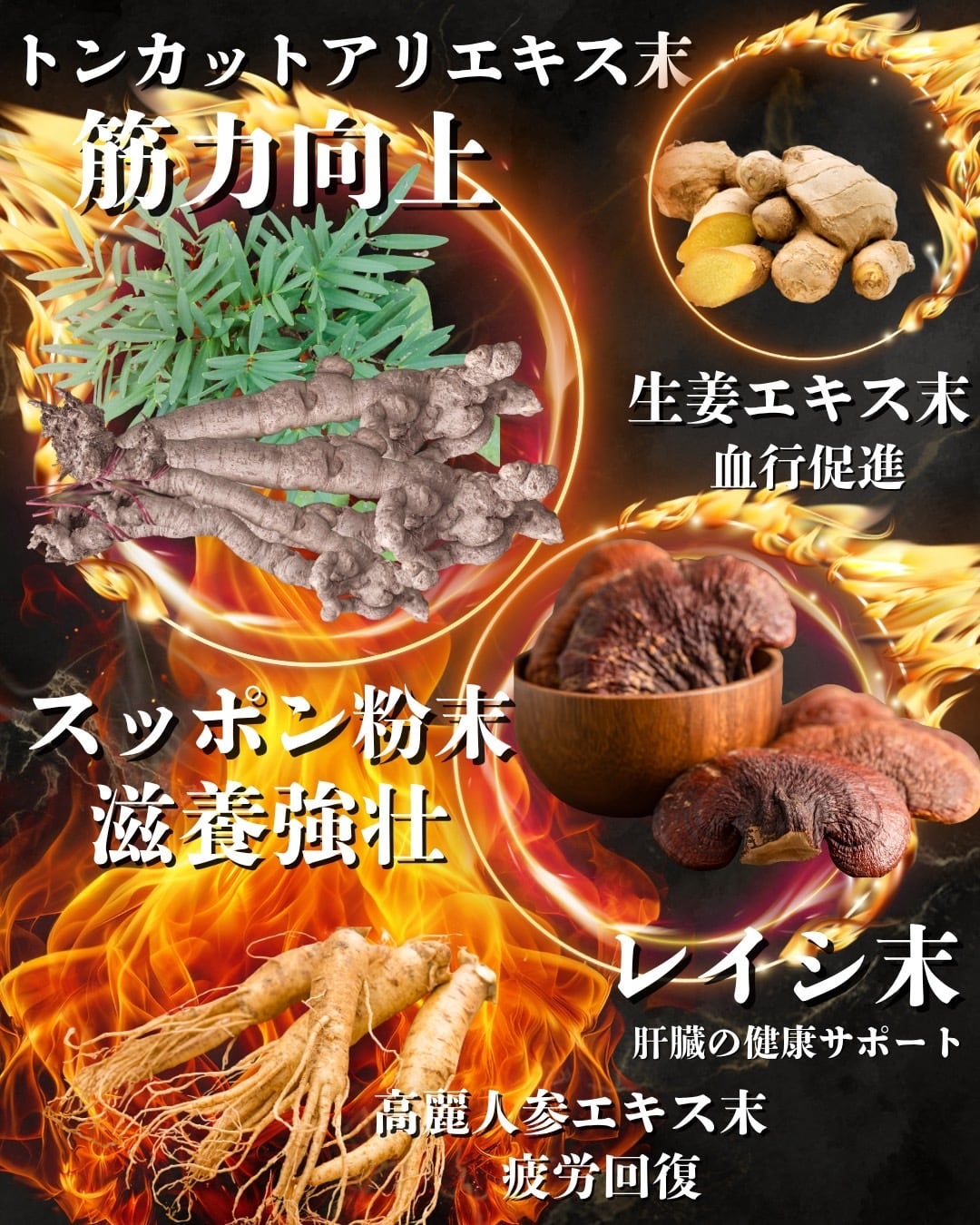 - **高麗人参**:疲労回復・集中力の強化
